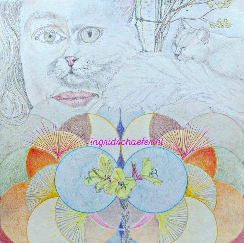 Boeddha Pluis is getekend op de ochtend dat het katje insliep