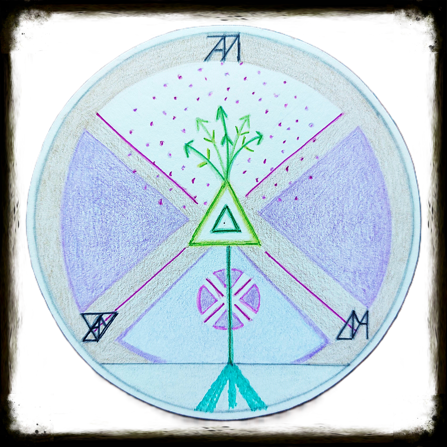 Vervolgens maak ik een Talisman met jouw intentie met de drie symbolen van de kaarten hierin verwerkt.